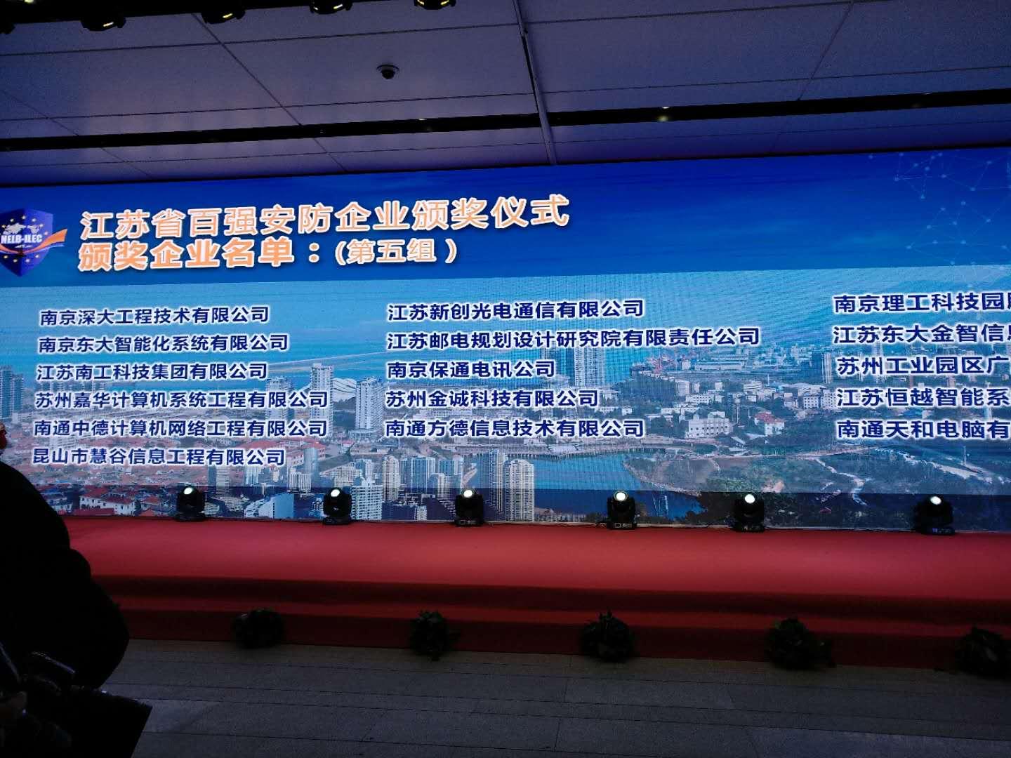 2017年12月12日,江苏省百强安防企业颁奖仪式在“连云港论坛暨警用装备和公共安全产品博览会”现场举行。参加会议的有原公安部科技信息局副局长牛晋,南京安全技术防范行业协会秘书长张亚忠、副秘书长查雪松,南京安全技术防范行业协会副理事长、江苏多多28科技集团执行董事陈俊桦等300多人。陈俊桦执行董事参加了颁奖活动,并代表江苏多多28科技集团有限公司领取了“江苏省百强安防企业”奖状。