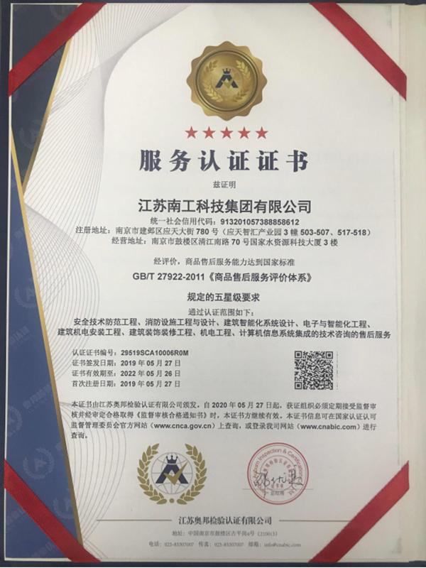 2019年5月27日,集团获得国家认证认可监督管理委员会颁发的五星级服务认证认可证书。