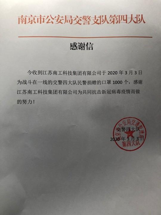 2020年3月3日,执行董事陈俊桦再次代表多多28集团,向南京市公安局交警支队第四大队一线民警无偿捐赠了1000枚医用口罩。