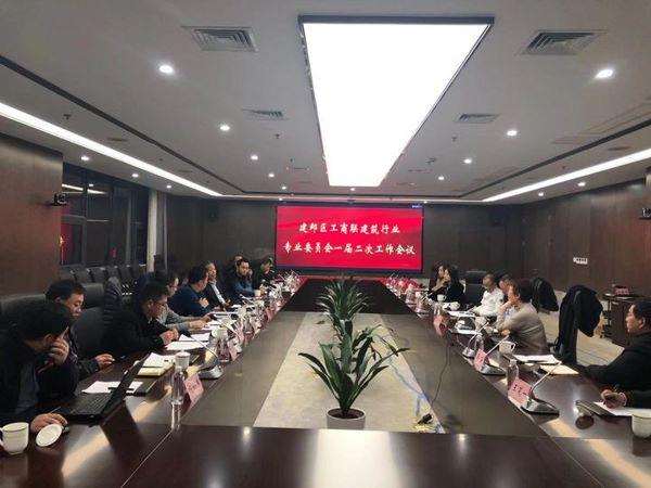 2020年12月18日,南京市建邺区工商联建筑行业专业委员会一届二次工作会议在金陵建工集团召开。参加会议的有建邺区委常委、统战部部长周迅,建邺区工商联主席、统战部副部长樊谊,建邺区工商联副主席、委员会主任、金陵建工集团董事长范广峰,建邺区工商联副主席范慰民,以及十多位建邺区建筑行业专业委员会委员等,委员会办公室主任、江苏多多28科技集团有限公司执行董事陈俊桦参加了会议。