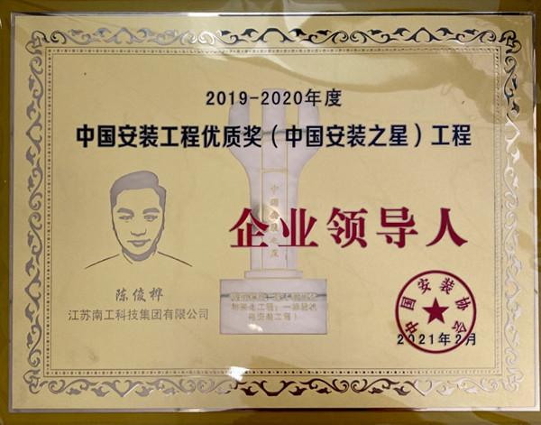集团执行董事陈俊桦荣获2019-2020年度中国安装工程优质奖(中国安装之星)工程企业领导人特别荣誉证书,集团宋慧荣获2019-2020年度中国安装工程优质奖(中国安装之星)工程项目经理特别荣誉证书。