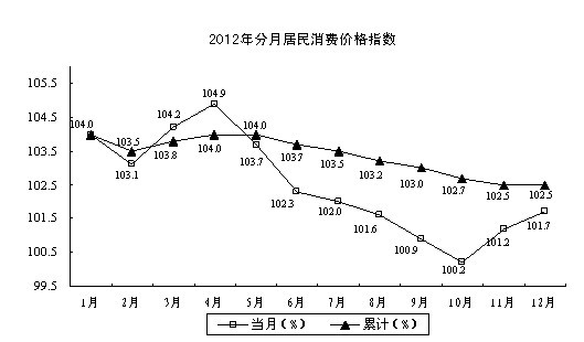 市区居民消费价格总指数102.5,即物价总水平比上年增长2.5%。其中,服务项目价格上涨1.3%,消费品价格上涨3.1%。八大类消费价格呈现“七涨一降”格局。