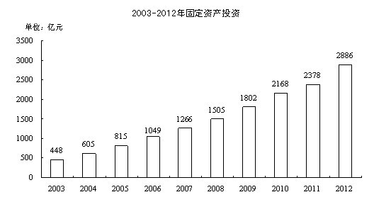 全年固定资产投资额2886.5亿元,比上年增长21.4,其中,民间投资2144.8亿元,增长21.2%,占固定资产投资的比重达74.3%;工业投资1710.0亿元,增长11.1%,占固定资产投资的比重达59.2%。固定资产投资中,第一产业投资4.3亿元、增长74.8%,第二产业投资1710.0亿元、增长11.1%,第三产业投资1172.1亿元、增长40.1%。全年基础设施投资484.9亿元,增长55.5%