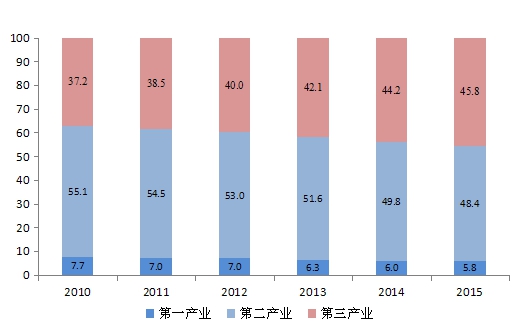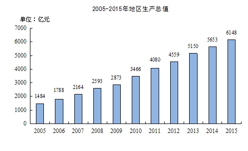 国民经济平稳增长。初步核算,全市实现生产总值②6148.4亿元,按可比价格计算,比上年增长9.6%。其中:第一产业增加值354.9亿元,增长2.9%;第二产业增加值2977.5亿元,增长9.7%;第三产业增加值2816.0亿元,增长10.5%。人均GDP达到84236元。按2015年平均汇率计算,人均GDP为13525美元,增长8.1%。